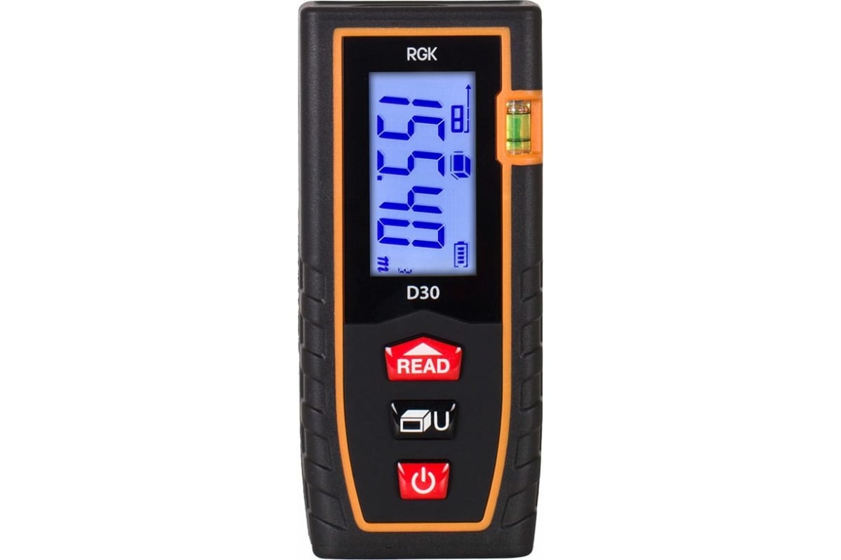 Лазерный дальномер RGK D30 – младшая модель в линейке лазерных рулеток от компании RGK. Прибор обладает всеми необходимыми базовыми функциями и станет отличным помощником в домашнем ремонте.
