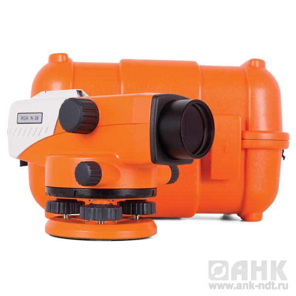 Стандартная комплектация: оптический нивелир RGK N-38, нитяной отвес, юстировочный набор (шестигранный ключ, шпилька), транспортный кейс.