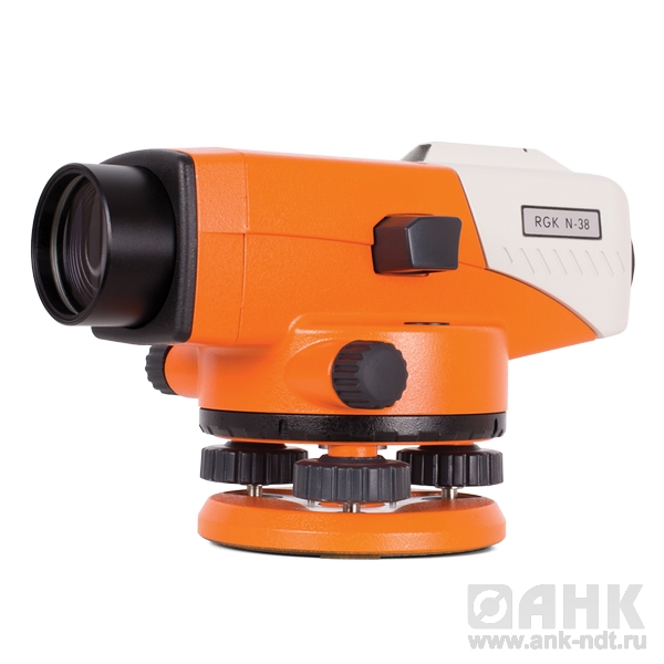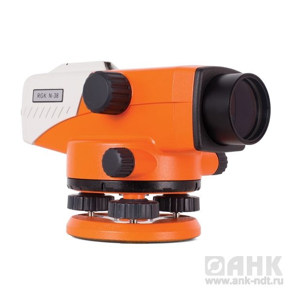 Высокая точность оптики нивелира усилена использованием компенсатора с магнитным демпфером. Система компенсации устраняет отклонение по горизонтали в пределах 15’ с точностью 0,2’, благодаря чему RGK N-38 обеспечивает стабильное изображение в зрительной трубе, а измерения сохраняют точность даже в сложных условиях работы. Для первоначальной установки нивелира в горизонтальное положение используются плавные наводящие винты, а контроль горизонта производится с помощью встроенного пузырькового уровня прибора.
