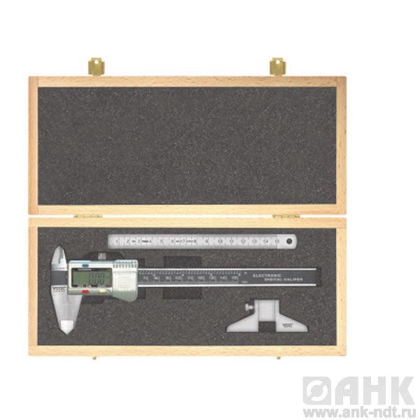 Набор из штангенциркуля и линейки, набор из цифрового штангенциркуля 0-150х0,01 мм, мостика 75 мм и линейки 150х13х0,5 мм.