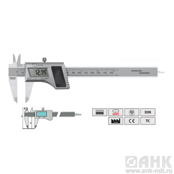Цифровой электронный штангенциркуль без выхода данных с работой от встроенной солнечной батареи при освещенности 200 Lux .