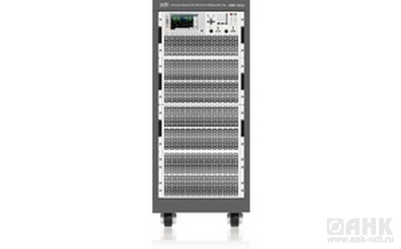 Источник питания постоянного и переменного тока (1ф/3Ф). Выходное напряжение постоянное 50…424 В, разрешение 0,01 В, макс ток в диапазоне 50…212 В, 72А, в диапазоне 50…424 В, 36А; Выходное напряжение переменное 1…150 В/2…300 В (10…5000 Гц), с разрешением 0,01 В; макс ток в диапазоне 1…150 В, 432А пик 1ф / 144 А 3ф, в диапазоне 2…300 В, 216 А пик 1ф / 72 А 3ф; Мощность 18000 Вт / 6000 Вт на каждую фазу; фазовый угол 0…360°; коэф гармоник не более 0,5%; одновременная цифровая индикация В-А-Гц-cosф; защита от перенапряжения, перегрузки по току, по мощности, от перегрева. Интерфейсы USB, LAN, GPIB, RS-232, CAN. питание от сети 380 В 3ф.
