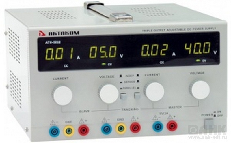 • 2x30 В, 2x5 А. 5В/3А. Линейный. 3 канала. 4 цифровых 3-х разрядных LED дисплея. Последовательное и параллельное соединение регулируемых каналов. Трекинг. Госреестр.