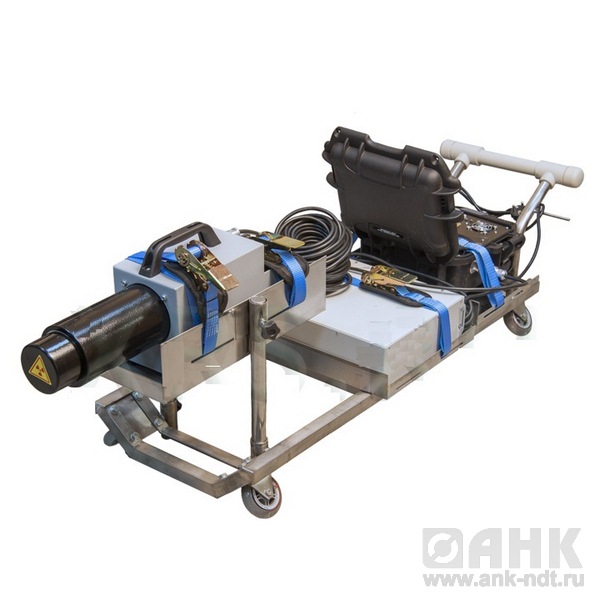 Для установки рентгеновского аппарата и разворачивания необходимого для его работы оборудования (пульт управления, аккумуляторный блок питания) на раме тележки предусмотрены три горизонтальные площадки. Площадка для расположения рентгеновского аппарата крепится на двух стойках — штативах с фиксаторами, предназначенных для регулировки высоты положения источника и его центрирования внутри окружности трубы.