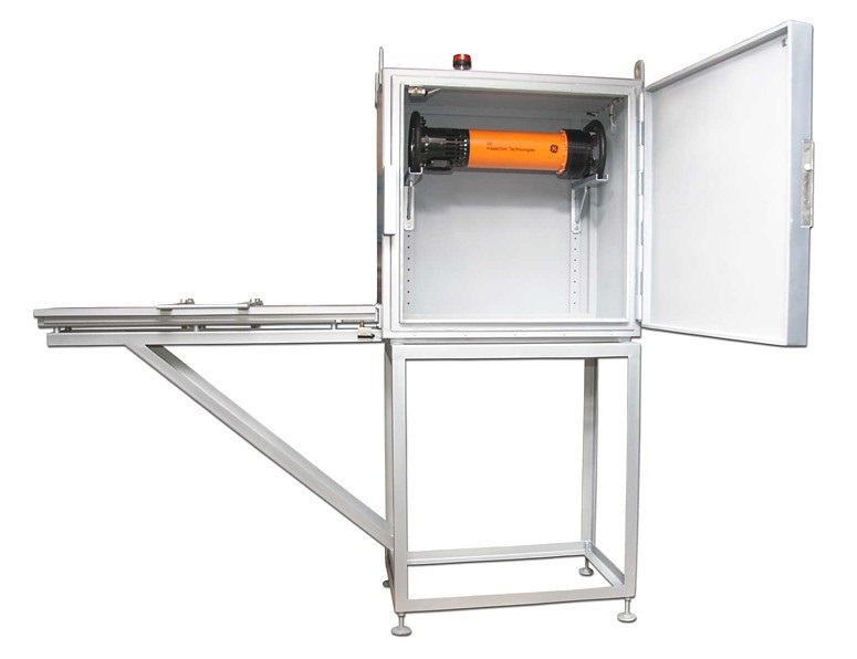 Для ввода длинномерных изделий с левой стороны камеры имеется окно, оборудованное защитным тоннелем-лабиринтом с откидной верхней крышкой. Крышка имеет магнитный фиксатор открытого положения. Дверь и крышка тоннеля для ввода длинномерных деталей оборудованы конечными выключателями, блокирующими включение и работу рентгеновского аппарата при открытии.