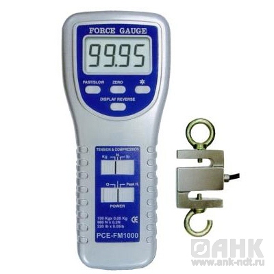 Динамометр с микропроцессорным управлением и точными показаниями давления и растяжения. Дисплей динамометра обладает большими цифрами и хорошо читается, так что исключаются ошибки при считывании результатов. Электронный динамометр имеет специальную измерительную ячейку с кабелем подключения длиной 2 м для соединения с прибором. Блочки ячейки могут быть легко сняты и заменены другими. Это позволяет использовать ячейку как в подвешенном состоянии, так и с другими нестандартными креплениями или даже на других стендах. Прибор для измерения силы сжатия и растяжения работает от батарей или сетевого адаптера (300 мА, опция). Динамометр PCE-FM1000 оснащается интерфейсом RS-232 для передачи данных. С с помощью специального программного обеспечения все полученные данные можно легко и быстро передать на компьютер (до 4 значений в секунду). А с помощью специальной опции - монтажной пластины, ячейку можно использовать и на механическом динамическом стенде LTS-20. Ячейка идеально подходит для проведения экспресс исследований и контроля качества.