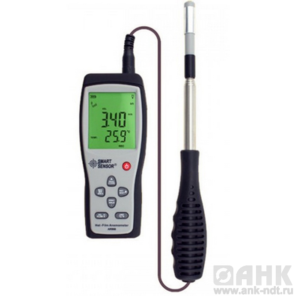 Цифровой анемометр AR866, класс термоанемометры, применяется для высокоточного определения температуры воздушного потока и скорости ветра при помощи датчика типа "нагретая струна". Такой выносной датчик более чувствителен, чем датчики других типов и отлично подходит для измерения в стесненных местах, например, в трубопроводах.