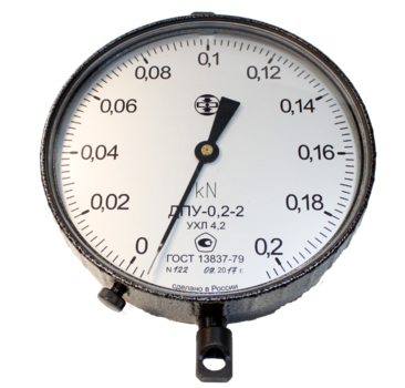 При снятии нагрузки с динамометра стрелка отсчетного устройства устанавливается на нулевую отметку с погрешностью не более 0,5 цены деления шкалы. Пределы дополнительной погрешности динамометра, вызванной изменением температуры окружающей среды, в диапазоне температур, отличных от температуры нормальных условий, 0,2 основной приведенной погрешности на каждые 10˚С.